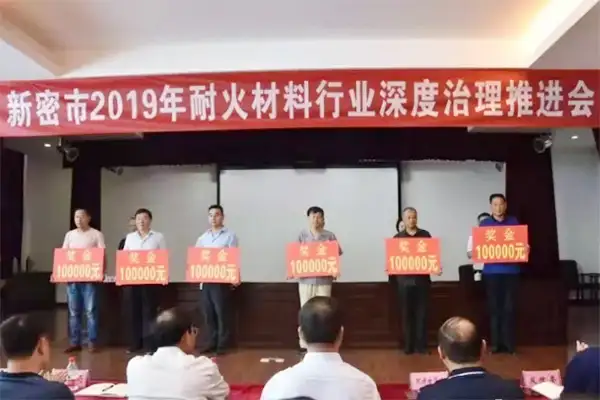 就在当天的会议上,新密市政府还宣布对深度治理先进的耐火材料企业给予奖励,郑州建信耐火材料成套有限公司等34家企业分别获得奖励10万元。