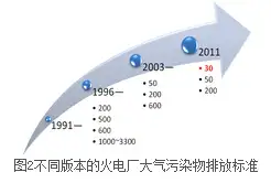 由于我国燃煤电厂执行的《火电厂大气污染物排放标准》(GB 13223)更新相对较慢,如图2所示,在2003年以前,出口排放浓度仅要求200mg/Nm3,基于排放标准的相对宽松,电除尘器在燃煤电厂占据了巨大的市场份额,随着环保标准的逐步提高,电除尘器对中国煤种的不适应就开始显现出来,除尘效率已经无法满足现行30mg/Nm3(特别地区限值20mg/Nm3)标准的要求。