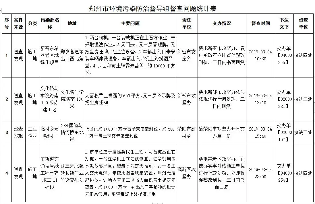 郑州市环境污染防治督导组督查问题通报(3月5日)