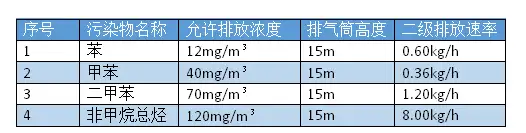 涂装有机废气排放标准执行二级标准,参照《大气污染物综合排放标准》(GB16297-1996)、《恶臭污染物排放标准》(GB14554-93)规定,涂装有机废气排放标准如下表: